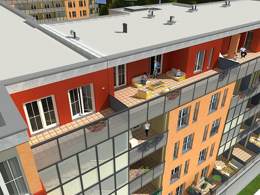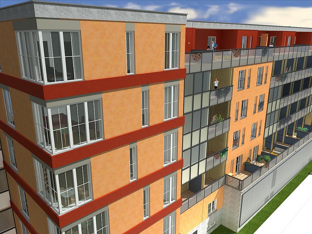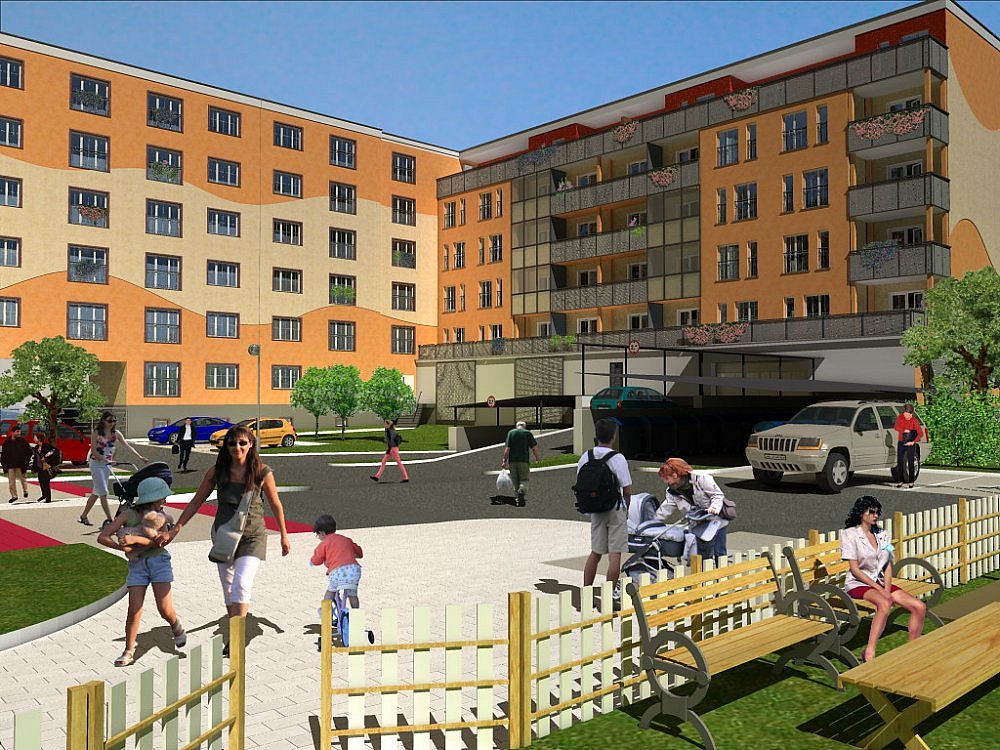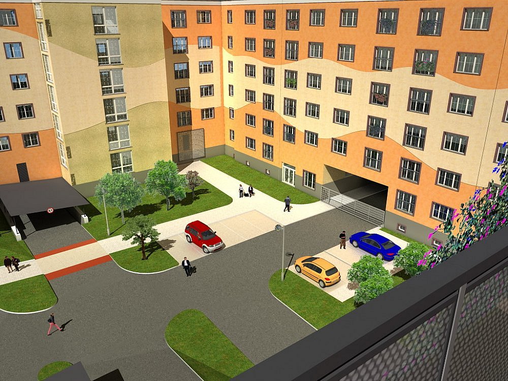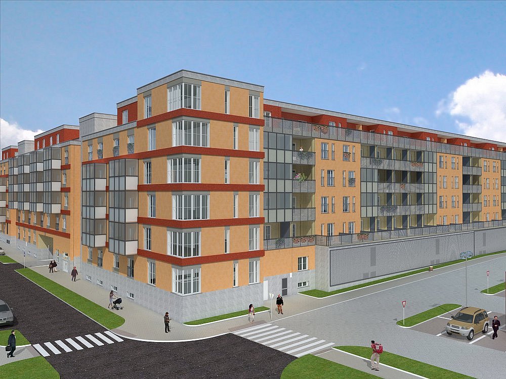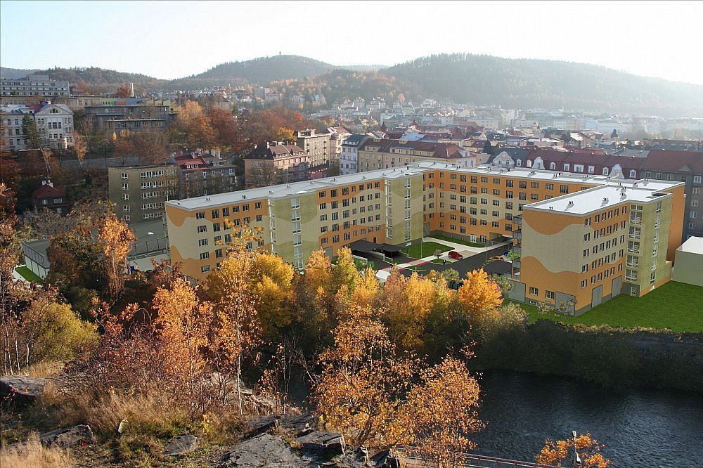 Jedná se o sedmipodlažní bytový komplex se 161 bytovými jednotkami ve tvaru nepravidelného písmene U, který navazuje na uliční čáru ulice Jateční a prodlouženou osu ulice Karla Čapka. Zastavovaná plocha je 3810 m2. Vnitřní část obytného komplexu je komunikačně napojena na ulici Jateční; částečně byla využita pro obslužnou komunikaci a parkování, ale především zde jsou plochy s parkovou úpravou – zeleň a stromy, část je vyčleněna pro dětské hřiště. V spodních podlažích objektů jsou umístěny garáže.