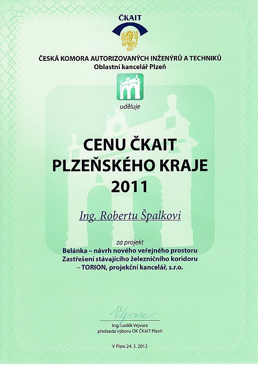 Za projekt byla udělena CENA ČKAIT PLZEŇSKÉHO KRAJE 2011.