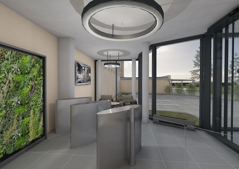Předmětem projektu je návrh interiéru vstupního atria a části schodiště – 1PP až 2NP. Předmětem návrhu interiéru je materiálové a barevné řešení vybraných místností.